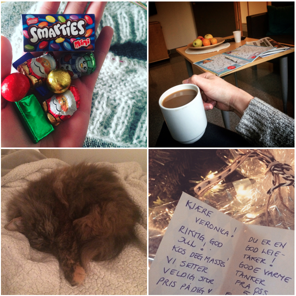 Det hender at jeg savner galehustiden – det å kunne dele kalendersjokoladen min etter morgenmøtene, og drikke uendelige mengder med kaffe uten at noen bryr seg om det. Men selv om jeg bor alene i hula mi, fikk jeg jaggu en god velkomst der også. Nabokatten kom på overnatting helt av seg selv, og huseierne mine ga fra seg tidenes julehilsen. I fare for å virke klissete, må jeg bare si at jeg har verdens beste huseiere!