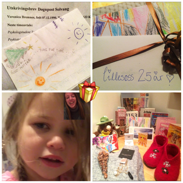 Dessverre ser jeg meg nødt til å godta at jeg i løpet av disse ukene også har klart å fylle det vi så fint kaller “halvveis til femti”. 25 år, har jeg altså blitt – og jeg har for lengst skjønt at min såkalte “tjuefireårskrise” bare var noe svada i forhold. Til tross for denne høye alderen har jeg likevel spist/skrapt/sett meg gjennom hele seks julekalendere, og mottatt altfor mange koselige gaver og hilsener. Trommehinnene mine har blitt smurt inn med myk og deilig julemusikk i Trefoldighetskirken, og hjertet mitt har gledet seg over samvær med fine folk, både her og der. Hodet mitt har brukt altfor mye tid på å grue seg til jul – men selve tiden gjorde at de langsomme timene likevel hoppet seg frem til julaften med stormskritt – og nå er vi plutselig ferdig med hele 2015.