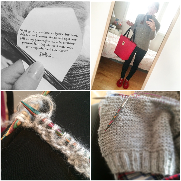 Så har jeg strikket! En tilfeldig ettermiddag gikk jeg innom en garnbutikk og fortalte de bak kassa at jeg nettopp hadde lært meg å strikke, og at jeg var himla fornøyd med det. Jeg meddelte at jeg hadde planer om å prøve meg på Skappelgenseren, og fikk tildelt både pinner og garn. Med på kjøpet fikk jeg en fancy strikkeveske, som jeg selvfølgelig måtte ta en fancy selfie med. Og så startet jeg da, og kan nå konkludere med at jeg er en strikker(?).